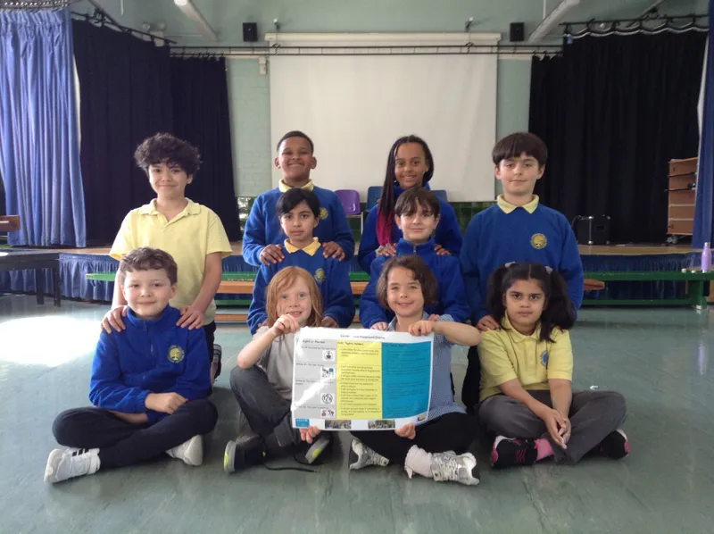 Our Rights Respecting Delegates are a group of pupils from Year 1 to Year 6. Two children represent their year group, forming a council of 12 children plus the Rights Respecting coordinators Koray and Ellie. The group meet throughout each term. The delegates are responsible for recording the minutes of each meeting and sharing the ideas and decisions with their classmates, ensuring everyone's voice is heard.